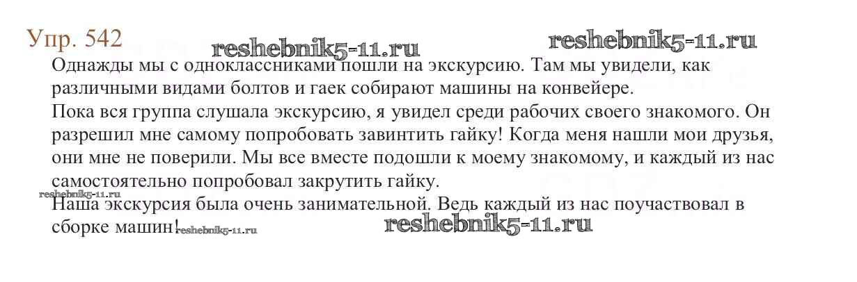 Русский язык за 6 класс Баранов Учебник Просвещение упражнение 542