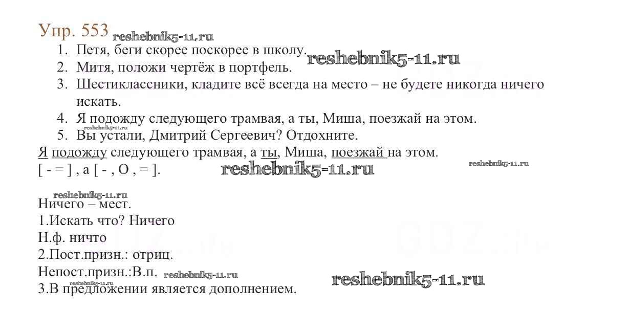 Готовая домашняя работа с ответами по Русскому языку за 6 класс Баранов, Ладыженская, Тростенцова, Григорян, Кулибаба Учебник Часть 1, 2 Просвещение 2015 ФГОС - Упражнения 553