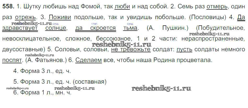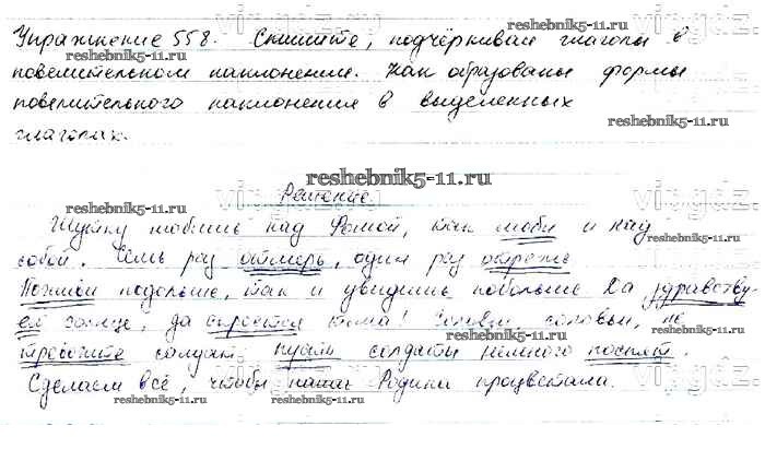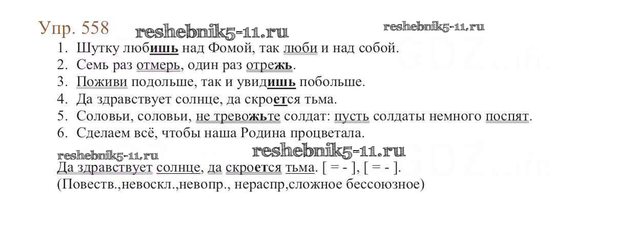 Готовая домашняя работа с ответами по Русскому языку за 6 класс Баранов, Ладыженская, Тростенцова, Григорян, Кулибаба Учебник Часть 1, 2 Просвещение 2015 ФГОС - Упражнения 558