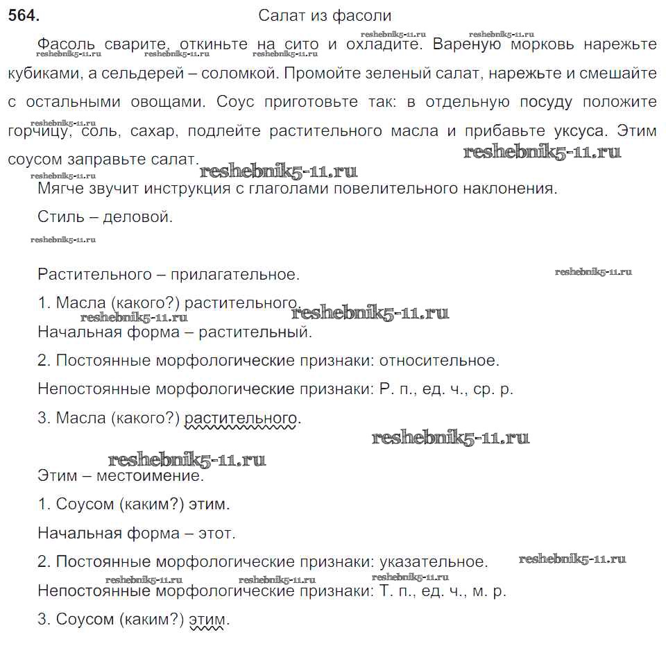 Готовая домашняя работа с ответами по Русскому языку за 6 класс Баранов, Ладыженская, Тростенцова, Григорян, Кулибаба Учебник Часть 1, 2 Просвещение 2015 ФГОС - Упражнения 564