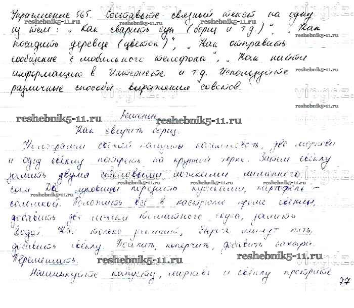 Готовая домашняя работа с ответами по Русскому языку за 6 класс Баранов, Ладыженская, Тростенцова, Григорян, Кулибаба Учебник Часть 1, 2 Просвещение 2015 ФГОС - Упражнения 565