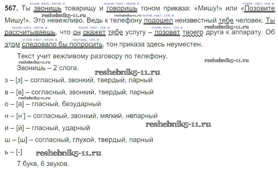 Русский язык за 6 класс Баранов Учебник Просвещение упражнение 567