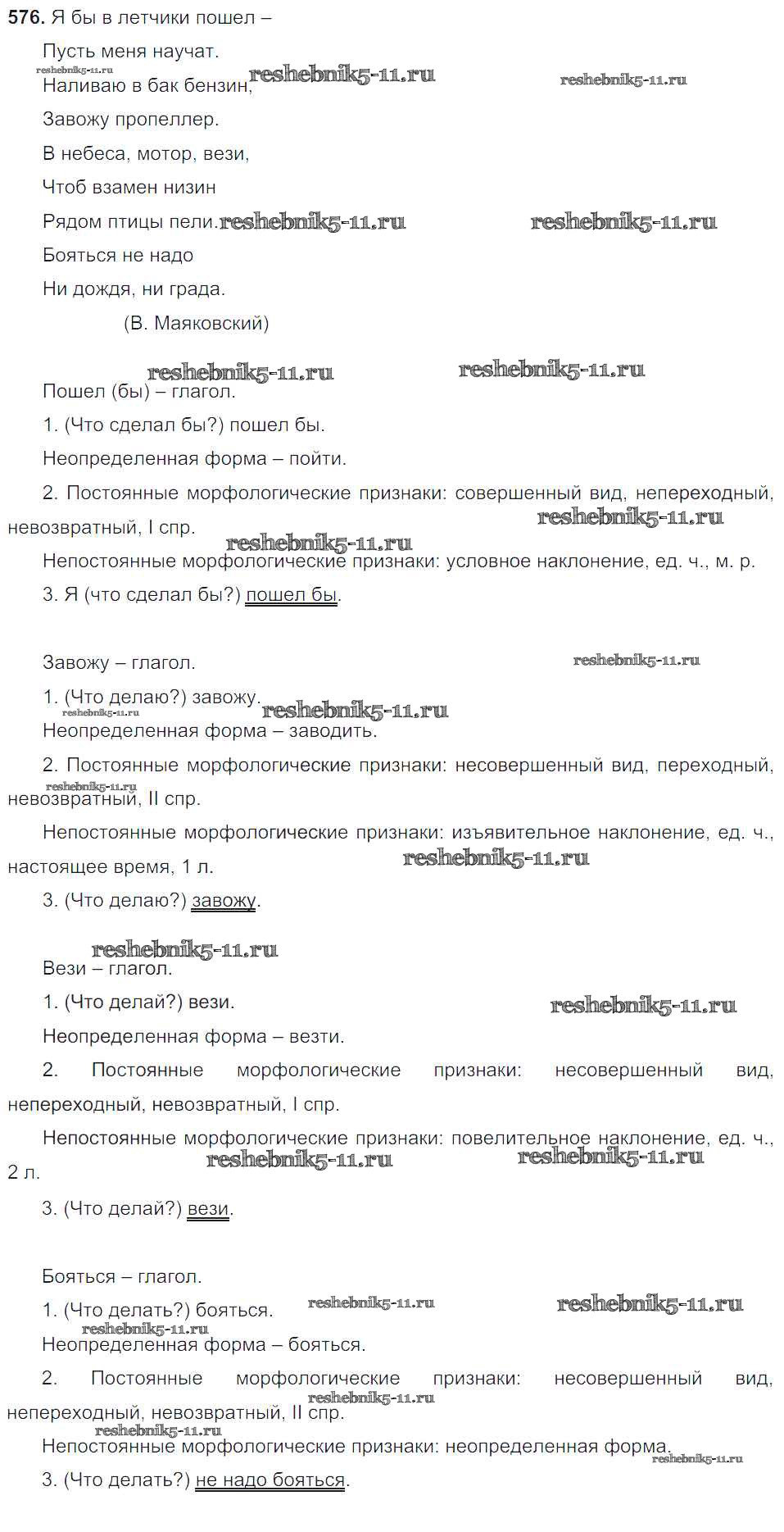 Готовая домашняя работа с ответами по Русскому языку за 6 класс Баранов, Ладыженская, Тростенцова, Григорян, Кулибаба Учебник Часть 1, 2 Просвещение 2015 ФГОС - Упражнения 576