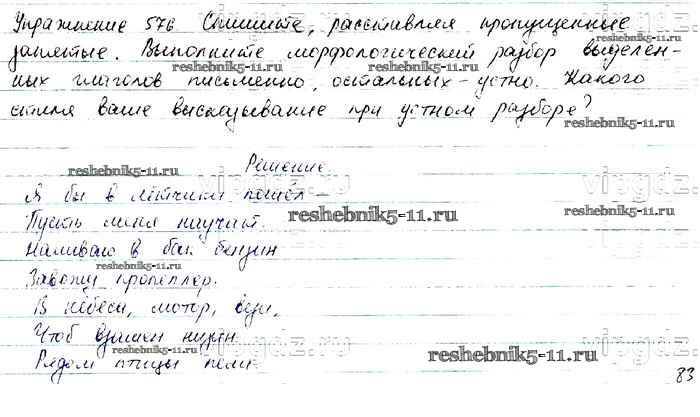 Русский язык за 6 класс Баранов Учебник Просвещение упражнение 576