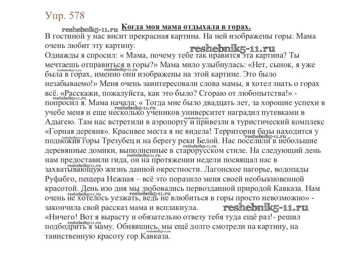 Готовая домашняя работа с ответами по Русскому языку за 6 класс Баранов, Ладыженская, Тростенцова, Григорян, Кулибаба Учебник Часть 1, 2 Просвещение 2015 ФГОС - Упражнения 578