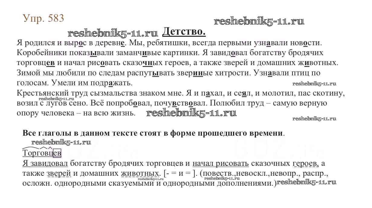 Готовая домашняя работа с ответами по Русскому языку за 6 класс Баранов, Ладыженская, Тростенцова, Григорян, Кулибаба Учебник Часть 1, 2 Просвещение 2015 ФГОС - Упражнения 583