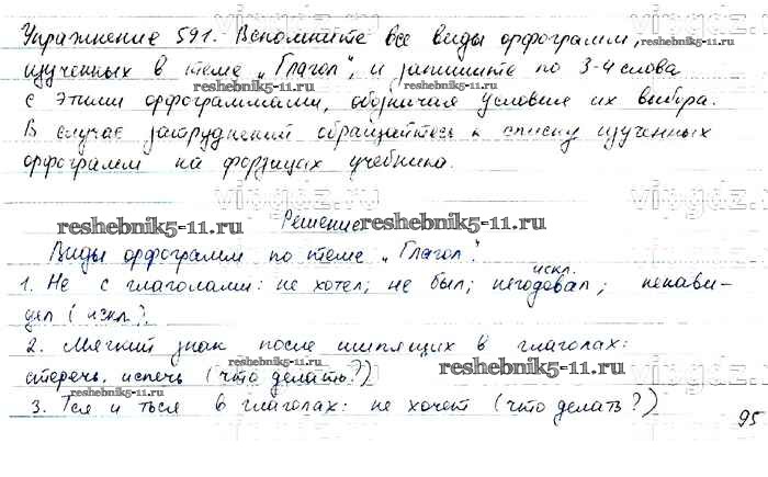 Готовая домашняя работа с ответами по Русскому языку за 6 класс Баранов, Ладыженская, Тростенцова, Григорян, Кулибаба Учебник Часть 1, 2 Просвещение 2015 ФГОС - Упражнения 591