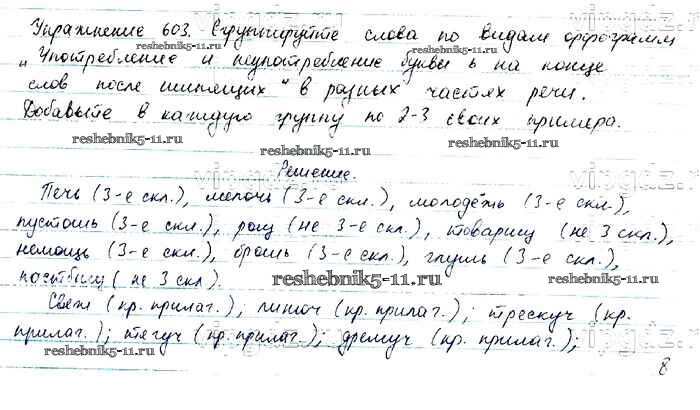 Готовая домашняя работа с ответами по Русскому языку за 6 класс Баранов, Ладыженская, Тростенцова, Григорян, Кулибаба Учебник Часть 1, 2 Просвещение 2015 ФГОС - Упражнения 603
