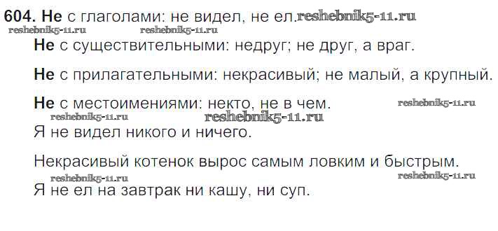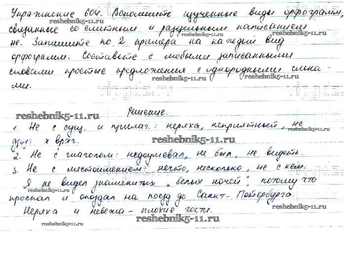 Готовая домашняя работа с ответами по Русскому языку за 6 класс Баранов, Ладыженская, Тростенцова, Григорян, Кулибаба Учебник Часть 1, 2 Просвещение 2015 ФГОС - Упражнения 604