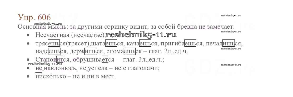Готовая домашняя работа с ответами по Русскому языку за 6 класс Баранов, Ладыженская, Тростенцова, Григорян, Кулибаба Учебник Часть 1, 2 Просвещение 2015 ФГОС - Упражнения 606