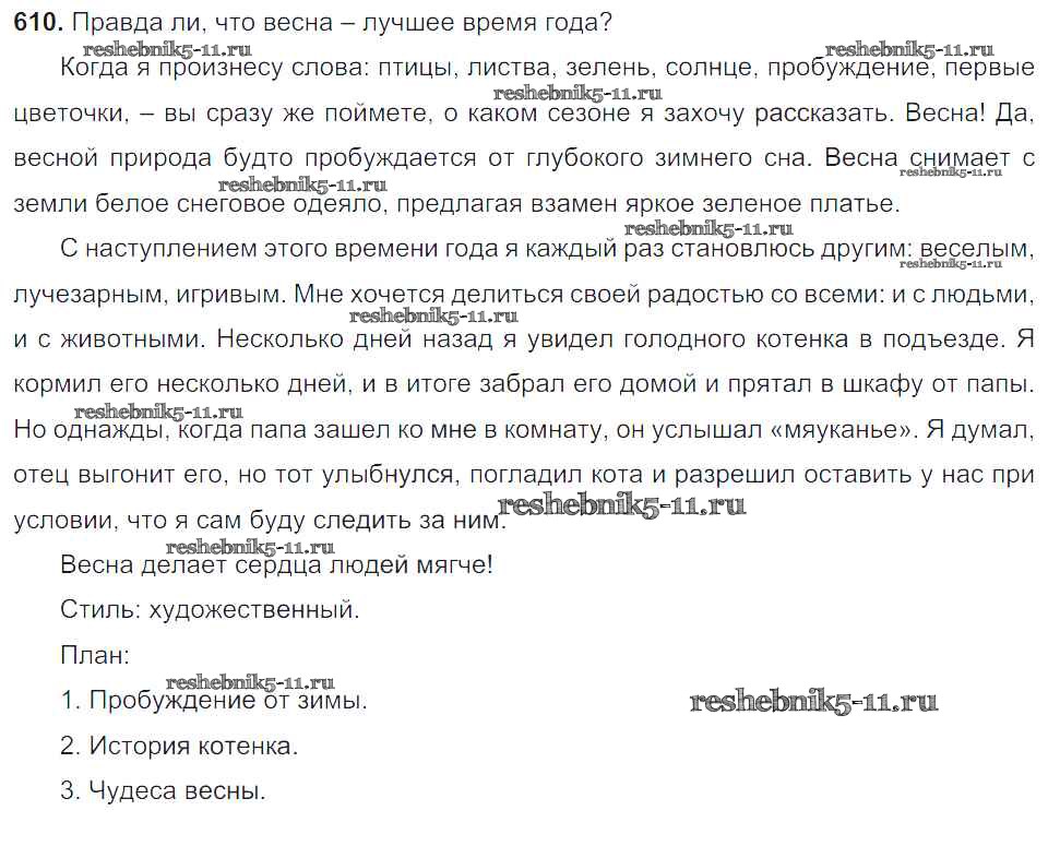 Русский язык за 6 класс Баранов Учебник Просвещение упражнение 610