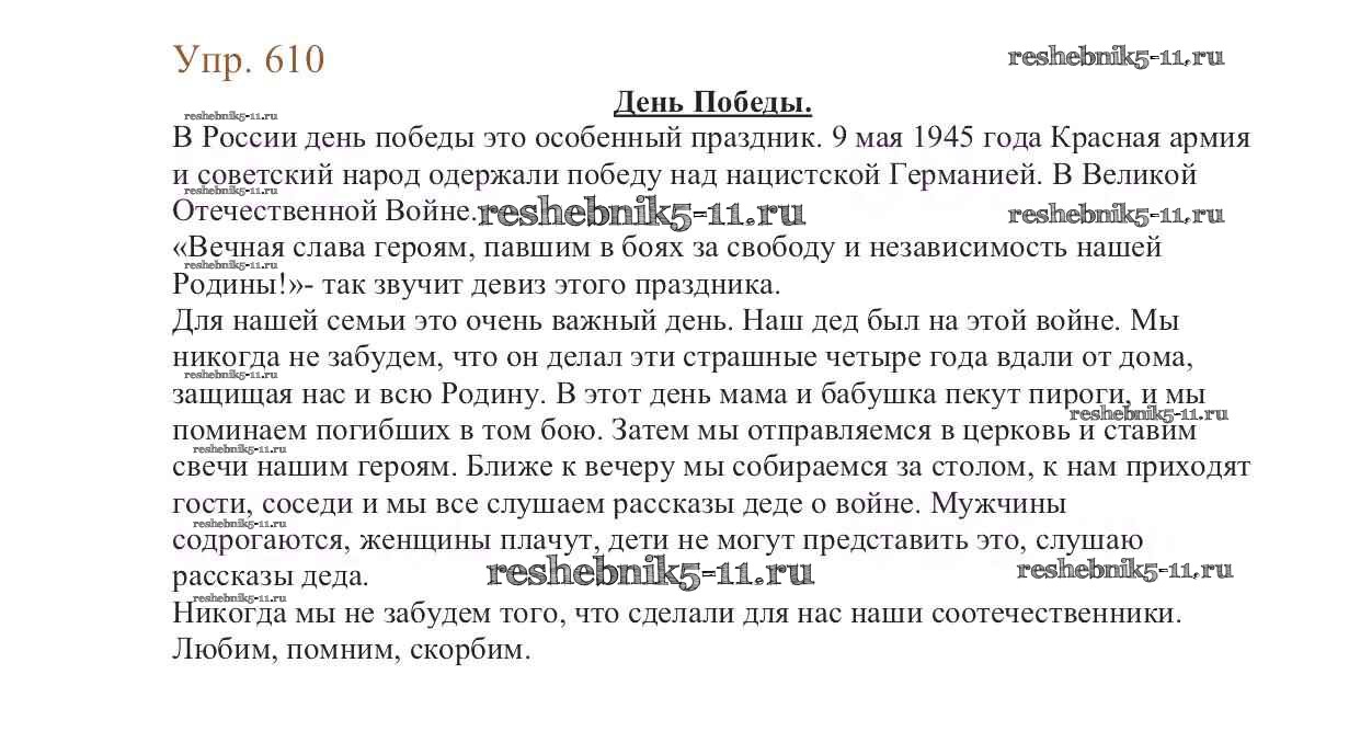 Готовая домашняя работа с ответами по Русскому языку за 6 класс Баранов, Ладыженская, Тростенцова, Григорян, Кулибаба Учебник Часть 1, 2 Просвещение 2015 ФГОС - Упражнения 610