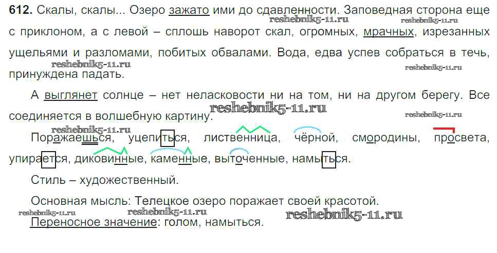 Готовая домашняя работа с ответами по Русскому языку за 6 класс Баранов, Ладыженская, Тростенцова, Григорян, Кулибаба Учебник Часть 1, 2 Просвещение 2015 ФГОС - Упражнения 612