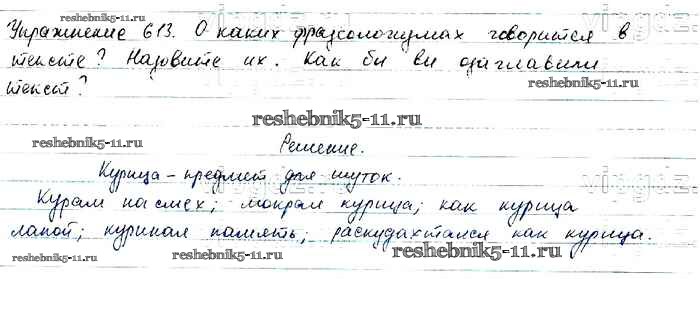 Готовая домашняя работа с ответами по Русскому языку за 6 класс Баранов, Ладыженская, Тростенцова, Григорян, Кулибаба Учебник Часть 1, 2 Просвещение 2015 ФГОС - Упражнения 613