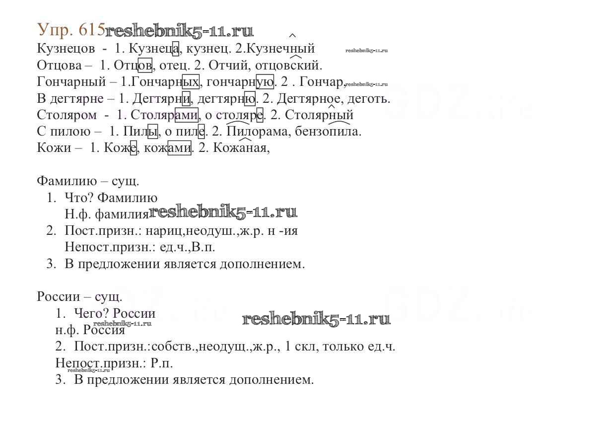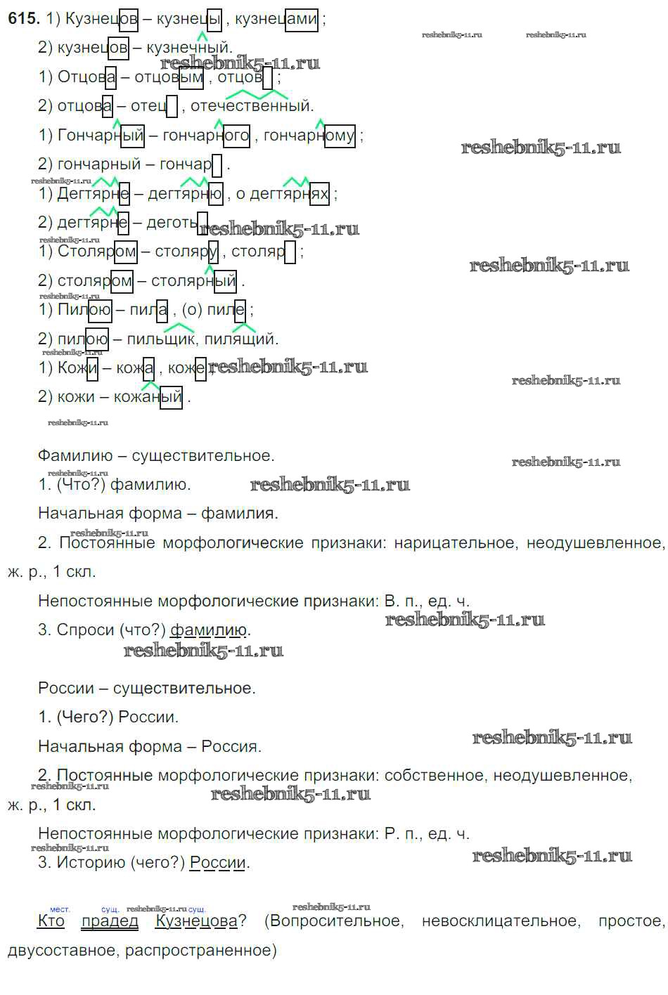 Готовая домашняя работа с ответами по Русскому языку за 6 класс Баранов, Ладыженская, Тростенцова, Григорян, Кулибаба Учебник Часть 1, 2 Просвещение 2015 ФГОС - Упражнения 615