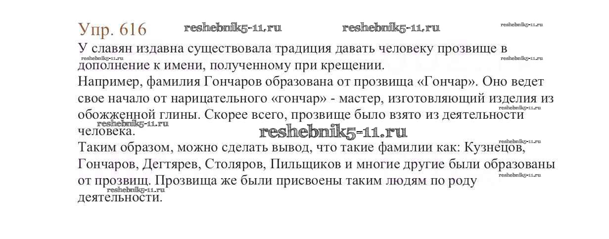 Готовая домашняя работа с ответами по Русскому языку за 6 класс Баранов, Ладыженская, Тростенцова, Григорян, Кулибаба Учебник Часть 1, 2 Просвещение 2015 ФГОС - Упражнения 616