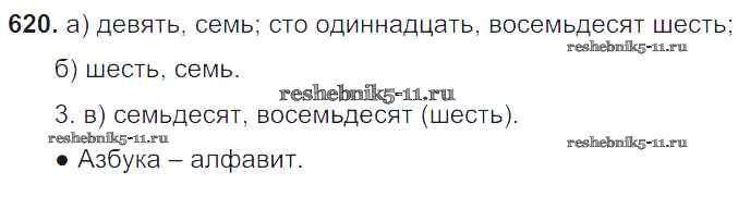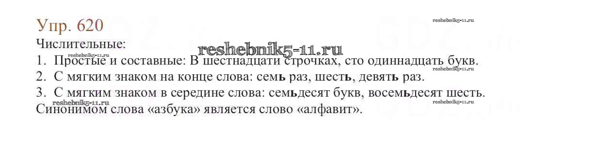 Готовая домашняя работа с ответами по Русскому языку за 6 класс Баранов, Ладыженская, Тростенцова, Григорян, Кулибаба Учебник Часть 1, 2 Просвещение 2015 ФГОС - Упражнения 620