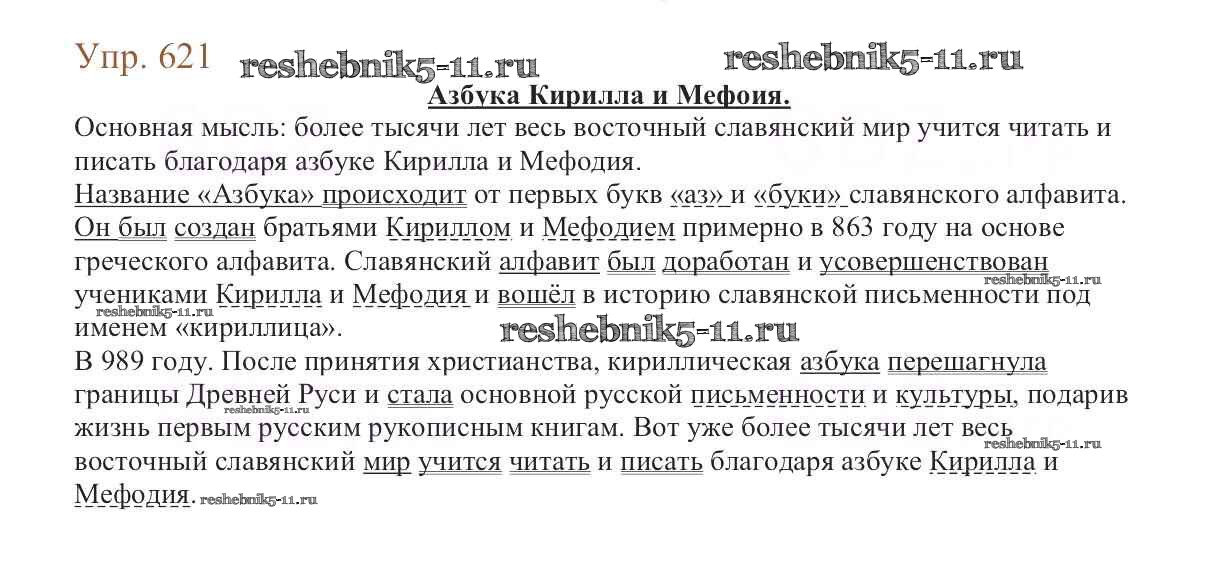 Русский язык за 6 класс Баранов Учебник Просвещение упражнение 621
