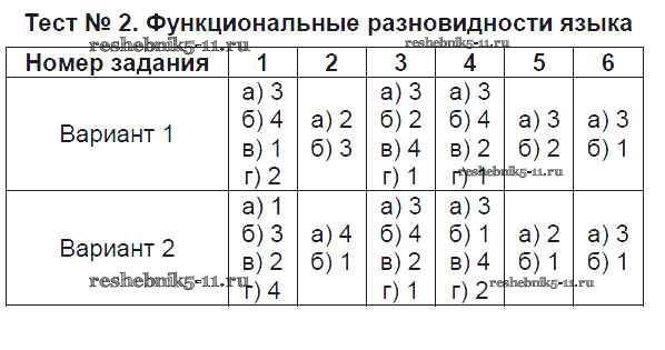 Готовая домашняя работа с ответами по Русскому языку за 6 класс Каськова Тематические тесты УМК Просвещение 2016 ФГОС - Тесты Тест №2. Функциональные разновидности языка