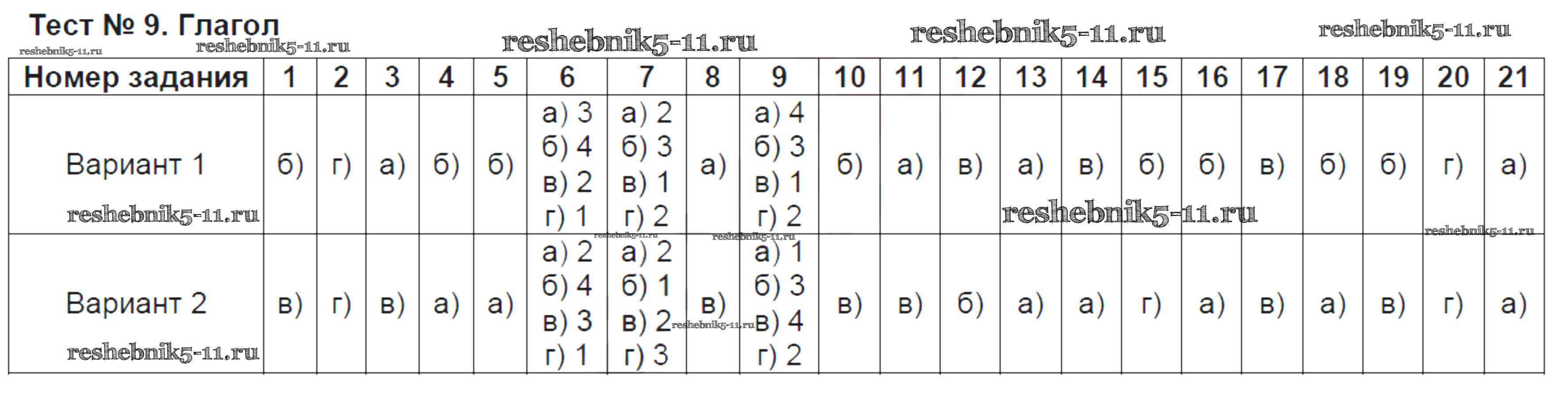 Готовая домашняя работа с ответами по Русскому языку за 6 класс Каськова Тематические тесты УМК Просвещение 2016 ФГОС - Тесты Тест №9. Глагол