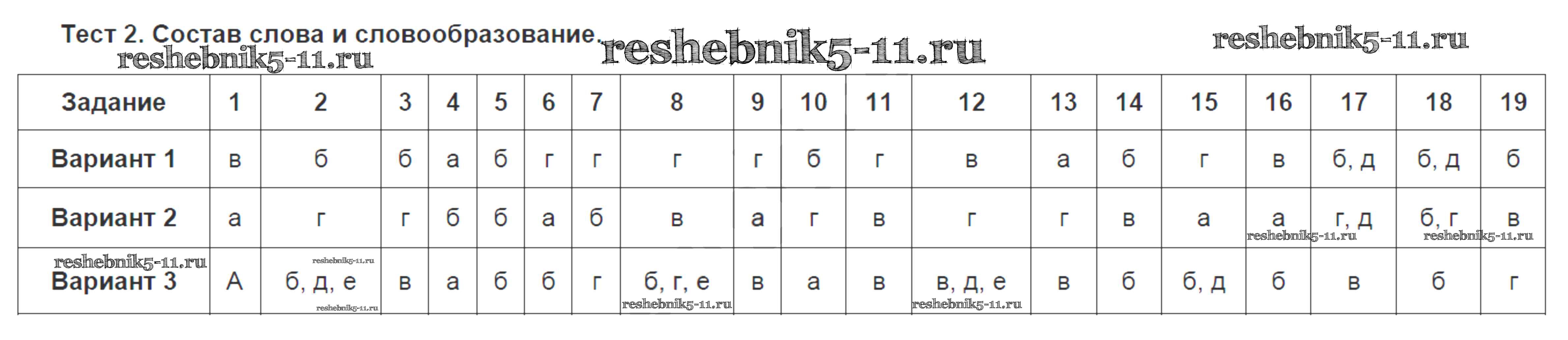 Готовая домашняя работа с ответами по Русскому языку за 6 класс Малюшкин Тестовые задания Сфера 2019 ФГОС - Тесты Тест №2. Состав слова и словообразование