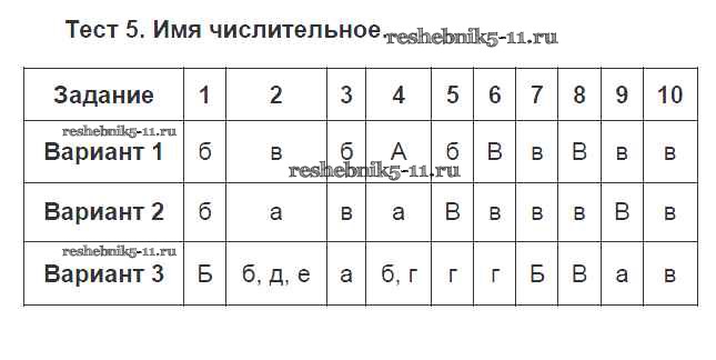 Готовая домашняя работа с ответами по Русскому языку за 6 класс Малюшкин Тестовые задания Сфера 2019 ФГОС - Тесты Тест №5. Имя числительное