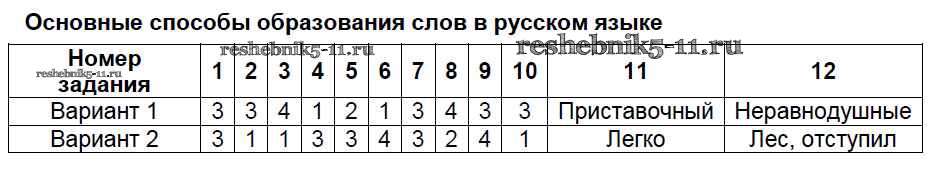 Готовая домашняя работа с ответами по Русскому языку за 6 класс Селезнева Тесты УМК Часть 1, 2 Экзамен 2014 ФГОС - Часть 1. Тесты Тест-10. Основные способы образования слов в русском языке