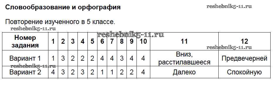 Готовая домашняя работа с ответами по Русскому языку за 6 класс Селезнева Тесты УМК Часть 1, 2 Экзамен 2014 ФГОС - Часть 1. Тесты Тест-8. Словообразование и орфография