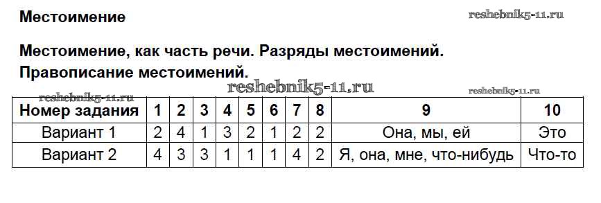 Готовая домашняя работа с ответами по Русскому языку за 6 класс Селезнева Тесты УМК Часть 1, 2 Экзамен 2014 ФГОС - Часть 2. Тесты Тест-10. Местоимение, как часть речи