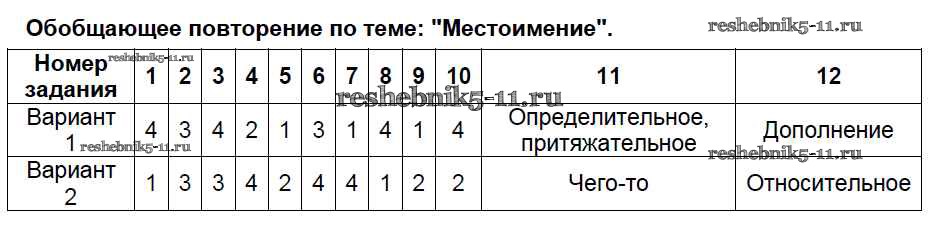 Готовая домашняя работа с ответами по Русскому языку за 6 класс Селезнева Тесты УМК Часть 1, 2 Экзамен 2014 ФГОС - Часть 2. Тесты Тест-11. Обобщающее повторение по теме Местоимение