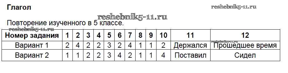 Готовая домашняя работа с ответами по Русскому языку за 6 класс Селезнева Тесты УМК Часть 1, 2 Экзамен 2014 ФГОС - Часть 2. Тесты Тест-12. Глагол