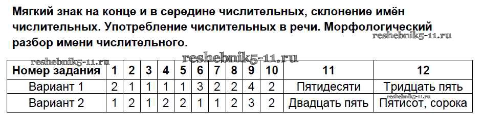 Готовая домашняя работа с ответами по Русскому языку за 6 класс Селезнева Тесты УМК Часть 1, 2 Экзамен 2014 ФГОС - Часть 2. Тесты Тест-8. Мягкий знак на конце и в середине числительных, склонение имён числительных