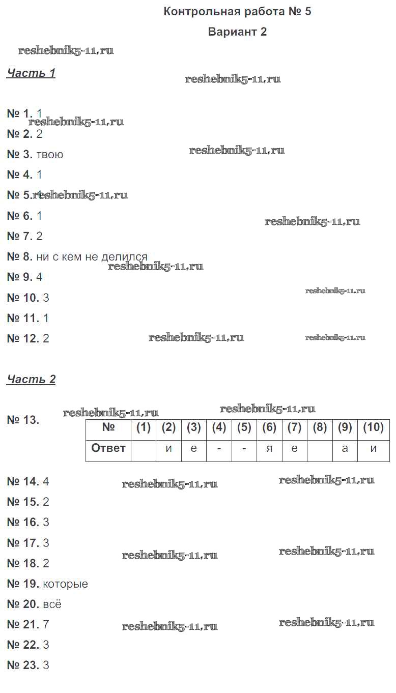 Готовая домашняя работа с ответами по Русскому языку за 6 класс Александров, Александрова Тематический контроль Национальное образование 2017 ФГОС - КР-5 вариант-2