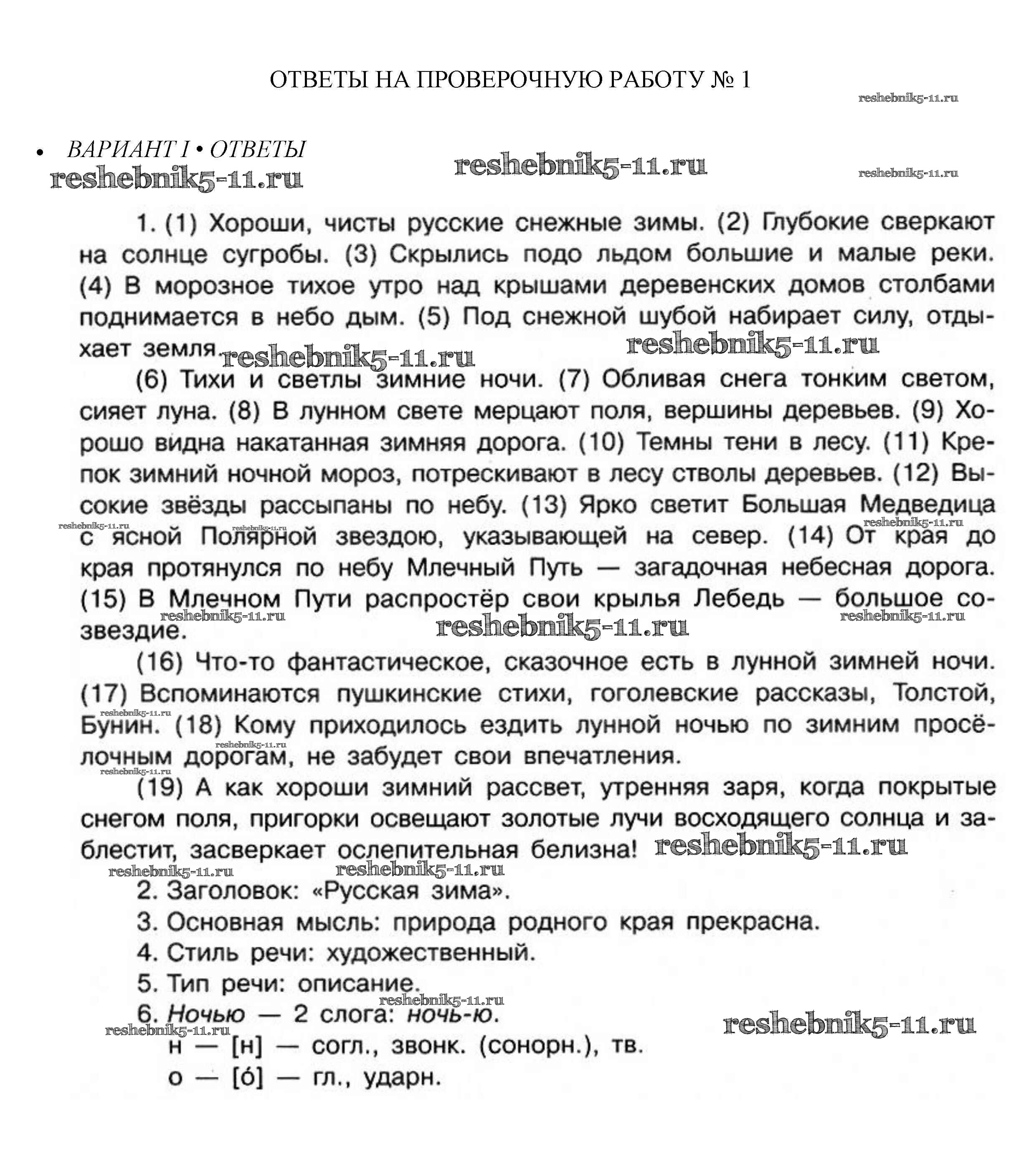 Готовая домашняя работа с ответами по Русскому языку за 6 класс Егорова Проверочные работы Просвещение 2018 - Повторение изученного в 5 классе (Варианты) 1