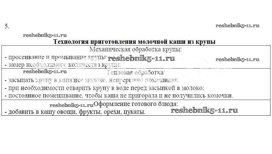 Готовая домашняя работа с ответами по Технологии за 6 класс Кожина, Маркуцкая, Кудакова Рабочая тетрадь Дрофа 2019 - Блюда из круп и бобовых 5