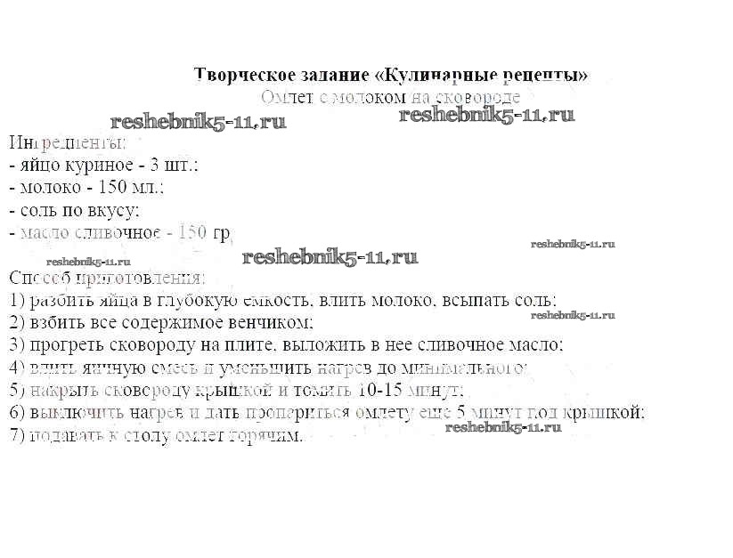 Решебник / кулинария / закрепление материала по теме - Кулинария / творческое задание