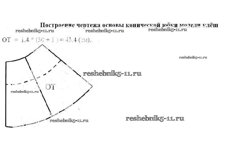 Решебник / конструирование / конструирование / построение чертежа основы конической юбки модели клёш - Конструктивные линии на чертежах юбок