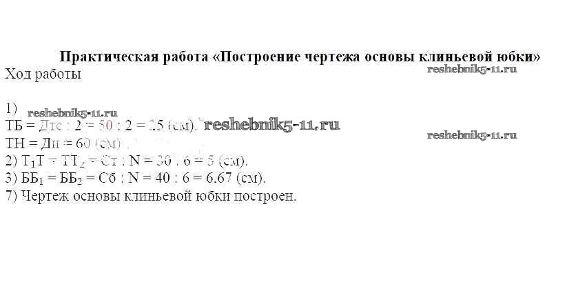 Готовая домашняя работа с ответами по Технологии за 6 класс Кожина, Маркуцкая, Кудакова Рабочая тетрадь Дрофа 2019 - Практические работы Построение чертежа основы клиньевой юбки -