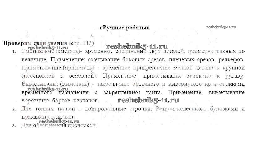 Готовая домашняя работа с ответами по Технологии за 6 класс Синица, Симоненко Учебник Алгоритм успеха Вентана-граф 2019 ФГОС - Страницы 113