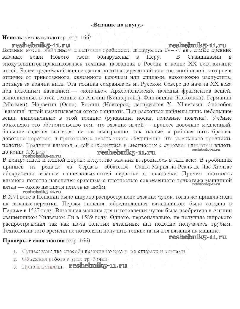 Готовая домашняя работа с ответами по Технологии за 6 класс Синица, Симоненко Учебник Алгоритм успеха Вентана-граф 2019 ФГОС - Страницы 166