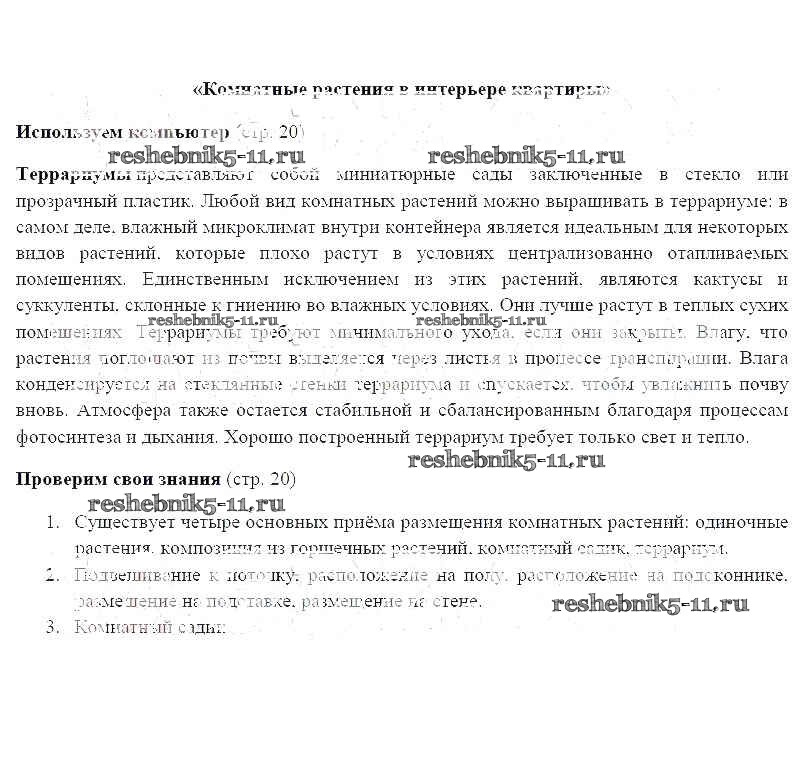 Готовая домашняя работа с ответами по Технологии за 6 класс Синица, Симоненко Учебник Алгоритм успеха Вентана-граф 2019 ФГОС - Страницы 20
