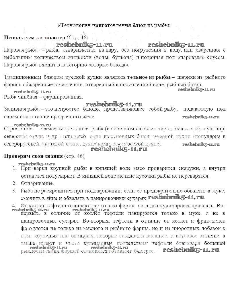 Готовая домашняя работа с ответами по Технологии за 6 класс Синица, Симоненко Учебник Алгоритм успеха Вентана-граф 2019 ФГОС - Страницы 46