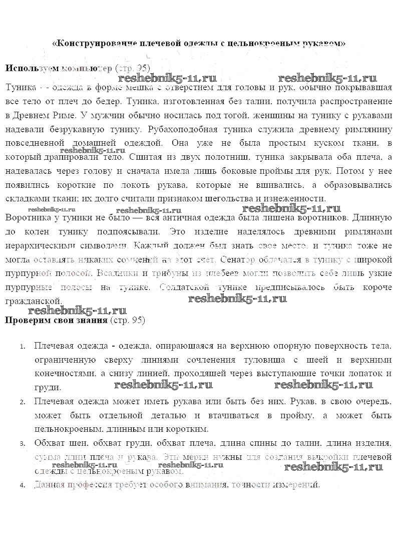 Готовая домашняя работа с ответами по Технологии за 6 класс Синица, Симоненко Учебник Алгоритм успеха Вентана-граф 2019 ФГОС - Страницы 95