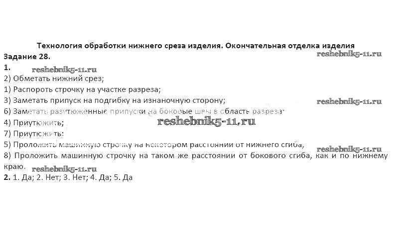 Готовая домашняя работа с ответами по Технологии за 6 класс Синица Рабочая тетрадь Алгоритм успеха Вентана-граф 2019 ФГОС - Задания 28