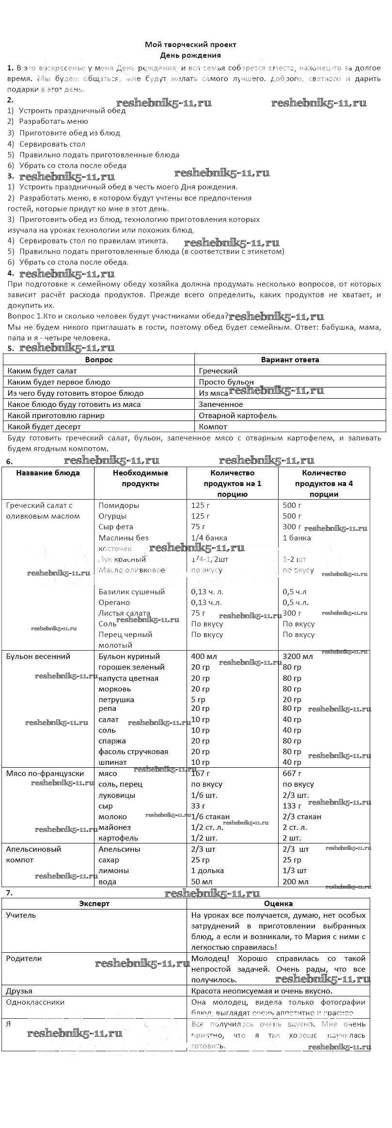 Готовая домашняя работа с ответами по Технологии за 6 класс Синица Рабочая тетрадь Алгоритм успеха Вентана-граф 2019 ФГОС - Творческие проекты День рождения