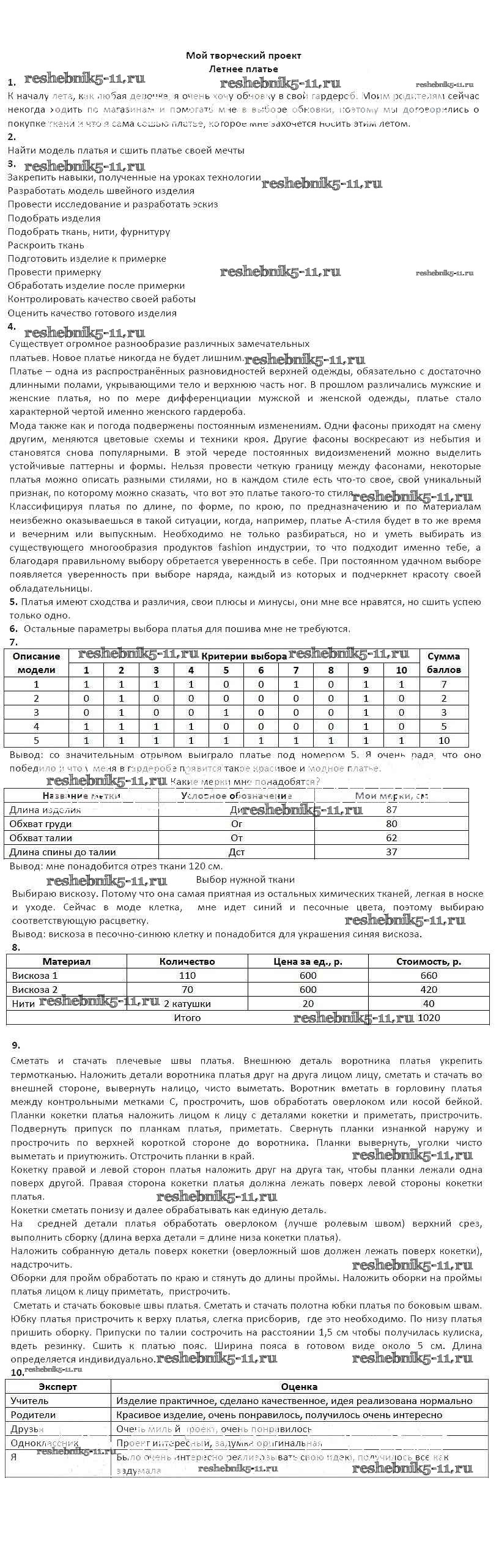 Готовая домашняя работа с ответами по Технологии за 6 класс Синица Рабочая тетрадь Алгоритм успеха Вентана-граф 2019 ФГОС - Творческие проекты Летнее платье