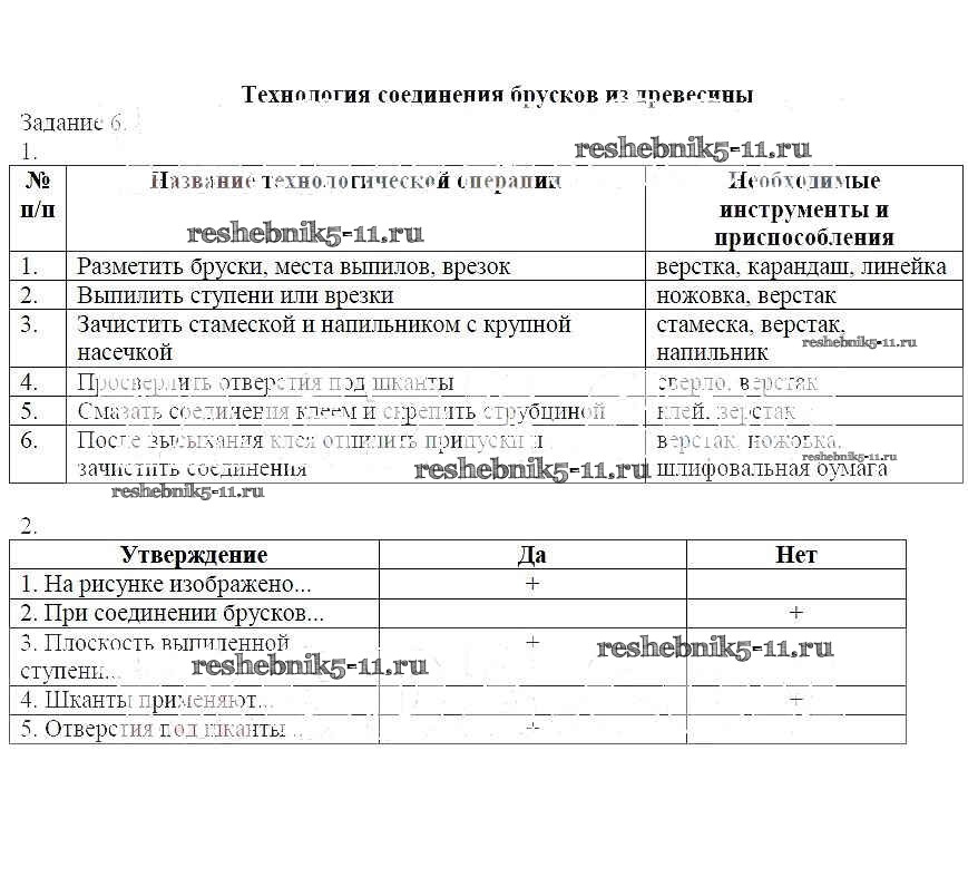 Готовая домашняя работа с ответами по Технологии за 6 класс Тищенко, Буглаева Рабочая тетрадь Алгоритм успеха Вентана-граф 2019 ФГОС - Технологии ручной и машинной обработки древесины и древесных материалов 6