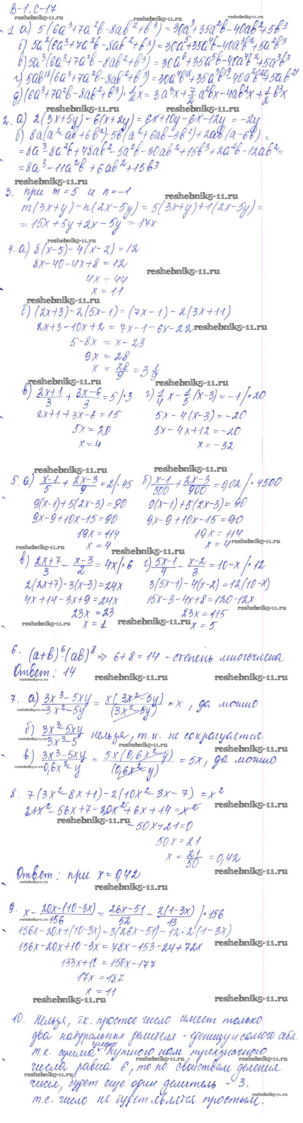 Готовая домашняя работа с ответами по Алгебре за 7 класс Звавич, Дьяконова Дидактические материалы УМК Экзамен 2018 ФГОС - Ср-17 Вариант 1