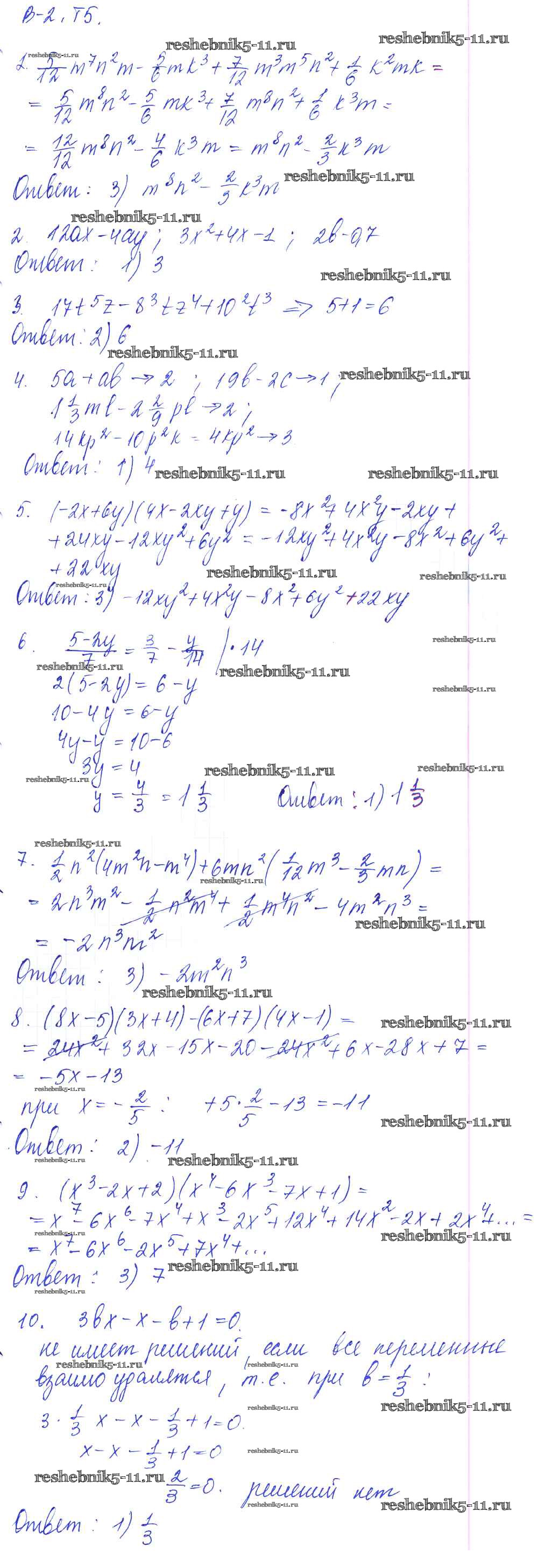 Готовая домашняя работа с ответами по Алгебре за 7 класс Звавич, Дьяконова Дидактические материалы УМК Экзамен 2018 ФГОС - Тест 5 Вариант 2