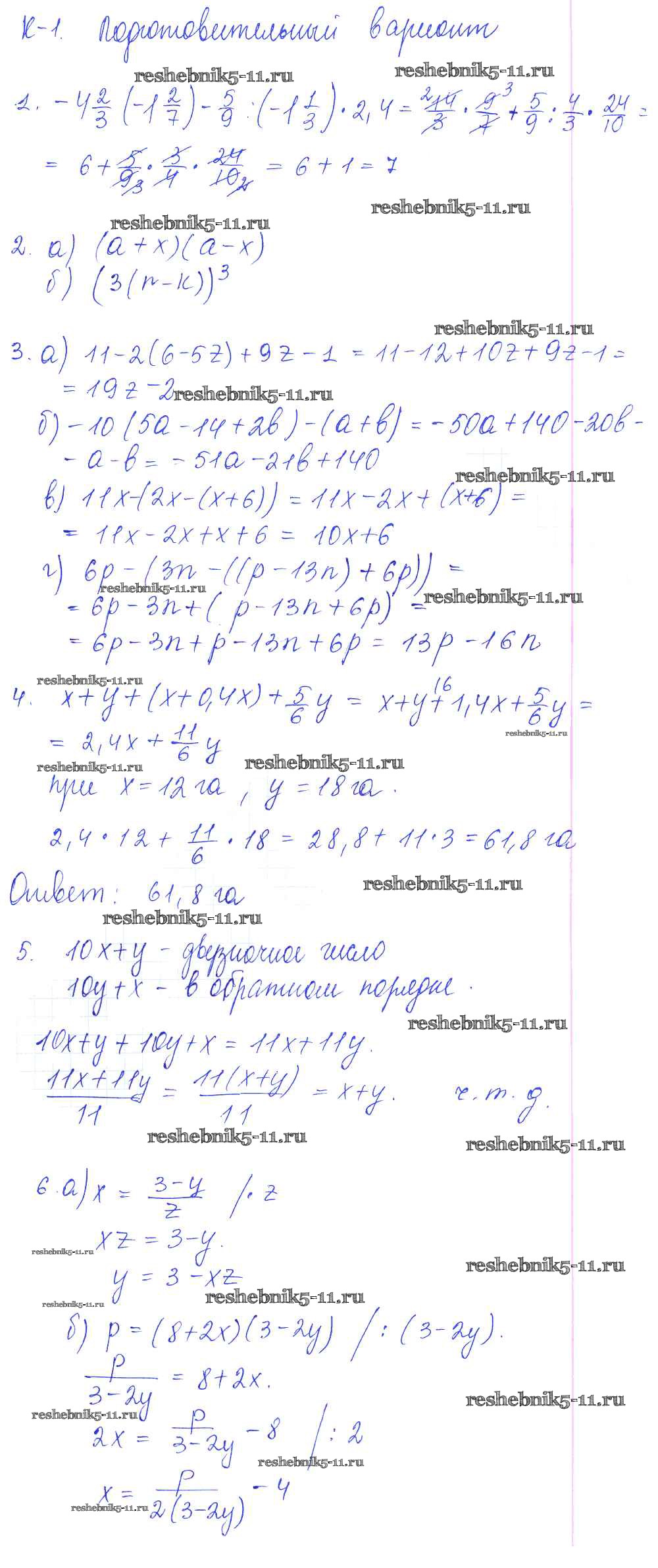 Готовая домашняя работа с ответами по Алгебре за 7 класс Звавич, Дьяконова Дидактические материалы УМК Экзамен 2018 ФГОС - КР-1 Подготовительный вариант